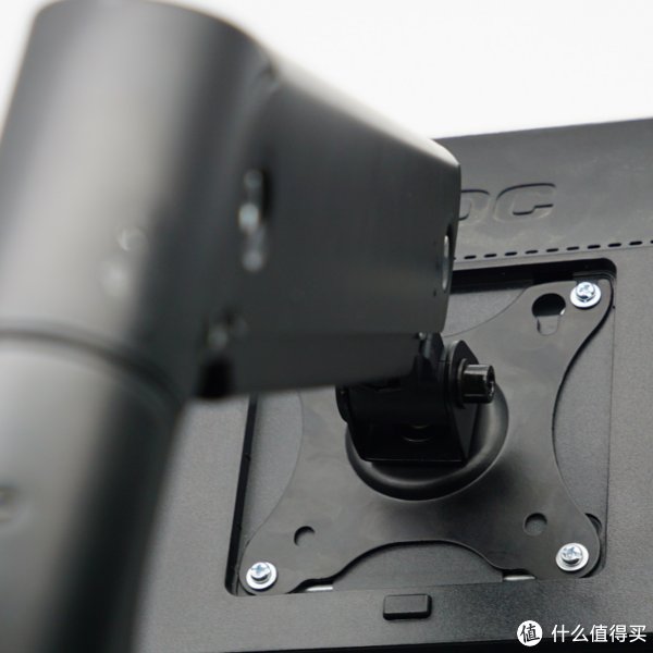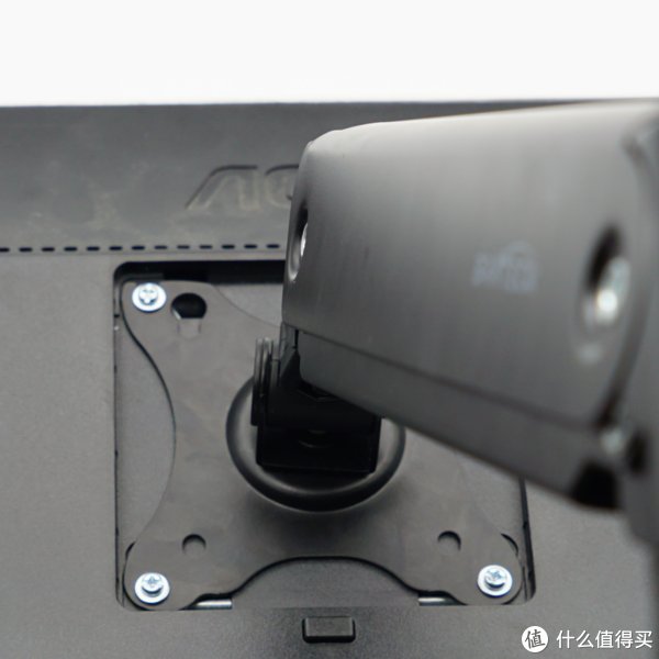 下一步将VESA面板与支架上臂相连,注意,VESA面板上有个方向箭头,记得把箭头方向朝上,至于为什么,在下一步你就懂了。