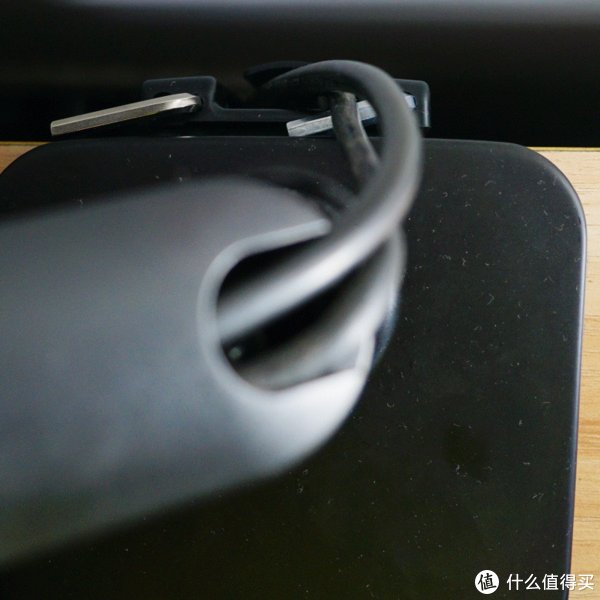 这个过线盖也大有玄机,除了中间可以给显示器线缆通过外,它的顶部还可以放置自带的内六角扳手,这样在需要调节支架支撑力和松紧程度时就可以随时找到工具。
